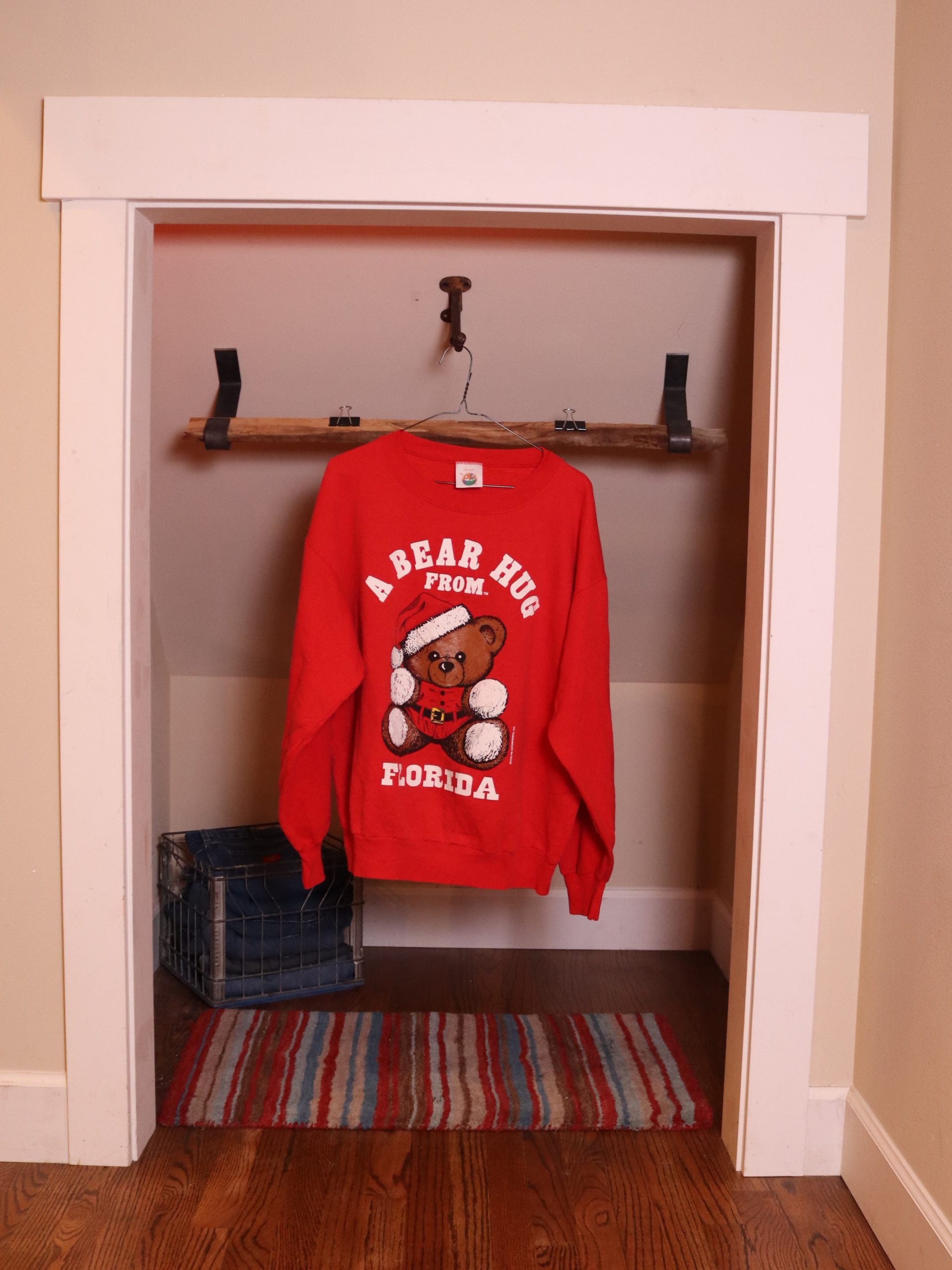 Rare, Official PM Enterprises, 1994 “A Hug from Florida” classic Teddy Bear Crewneck. Size XL (runs small). Red with high quality White lettering and vintage Teddy Bear look. A classic holiday tradition from PM Enterprises. Just like Grandma used to get you.