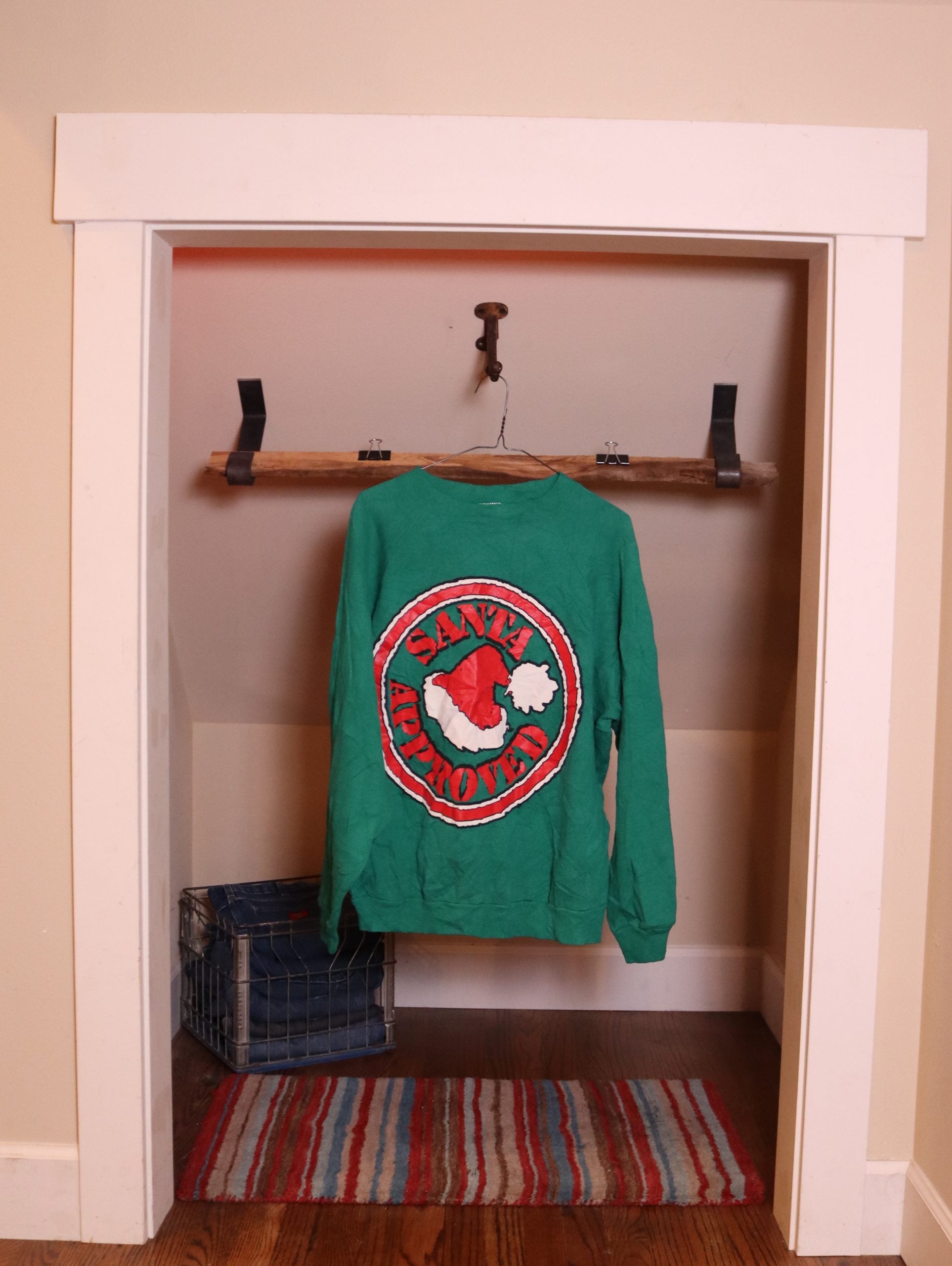 Screenprint, "Santa Approved" crewneck, Size M, Green w/Red & White screenprint.